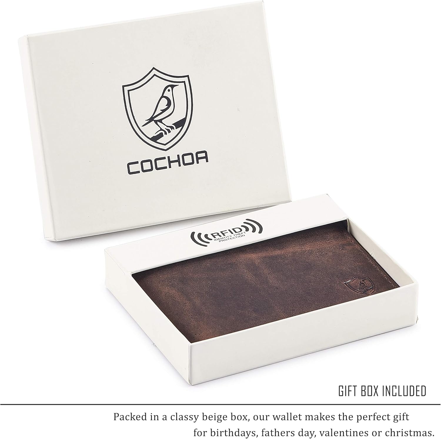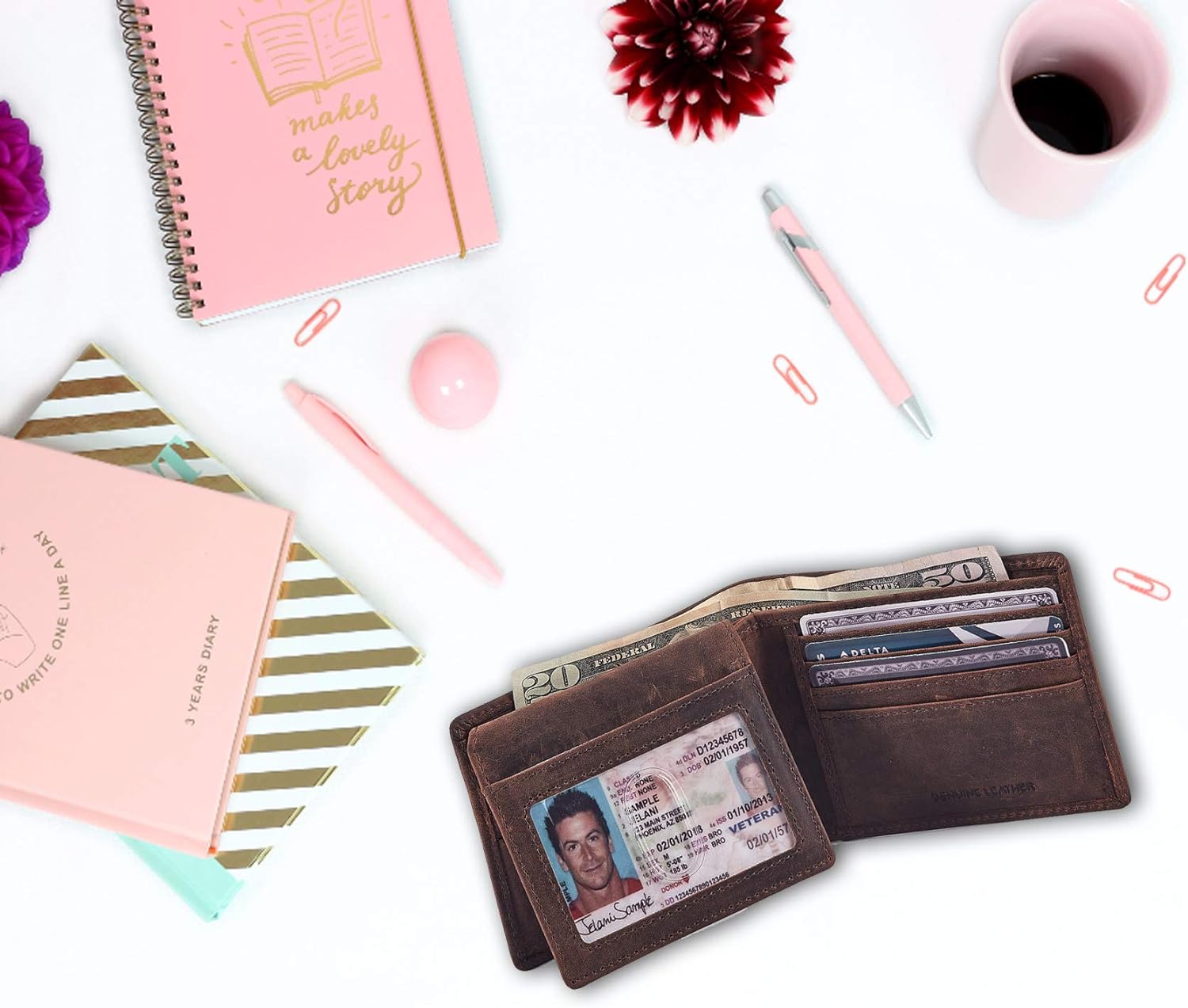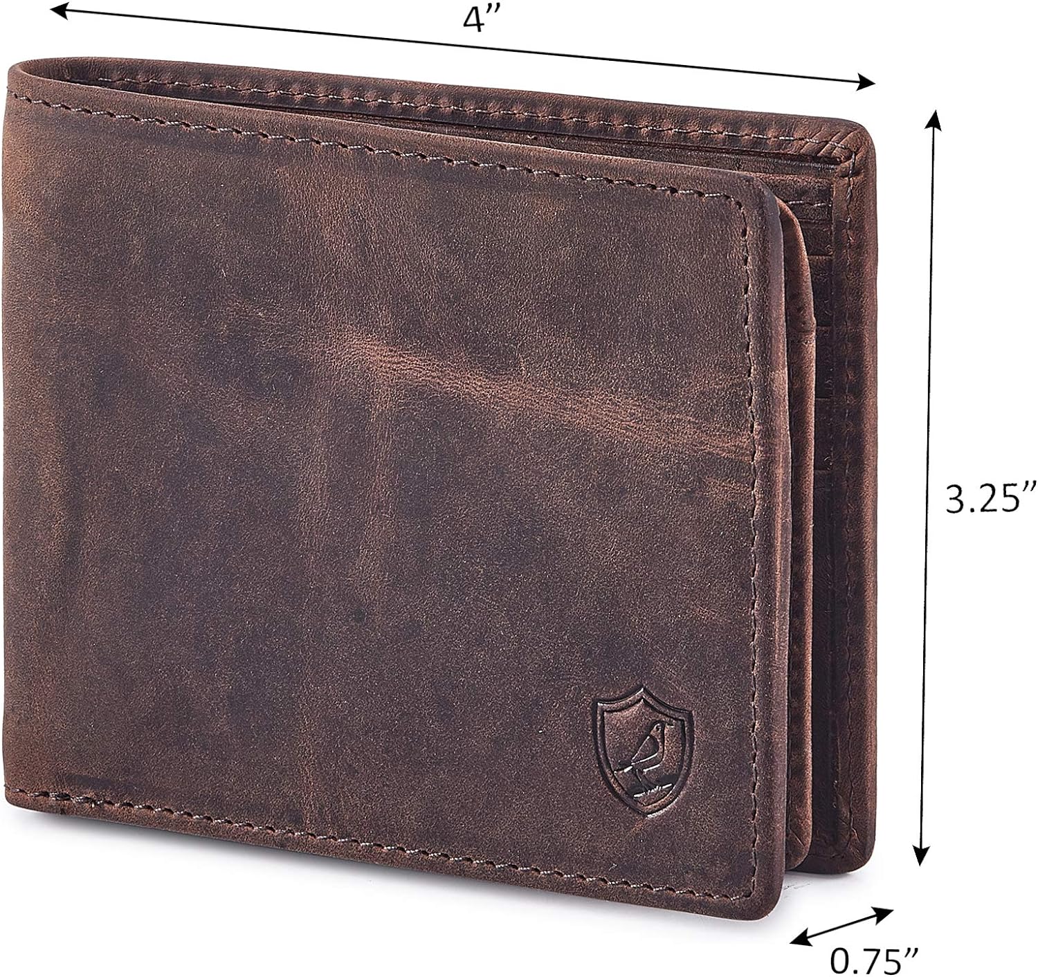 • Men's Real Leather RFID Blocking Stylish Bifold Wallet with 2 ID Window (Crazy Horse, Cognac)