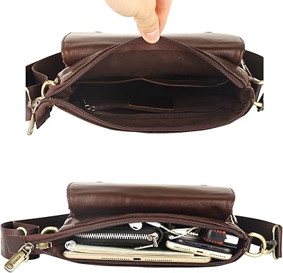 • Genuine Leather Messenger Bag, Sling Bag Crossbody Shoulder Bags for Travel Work Business