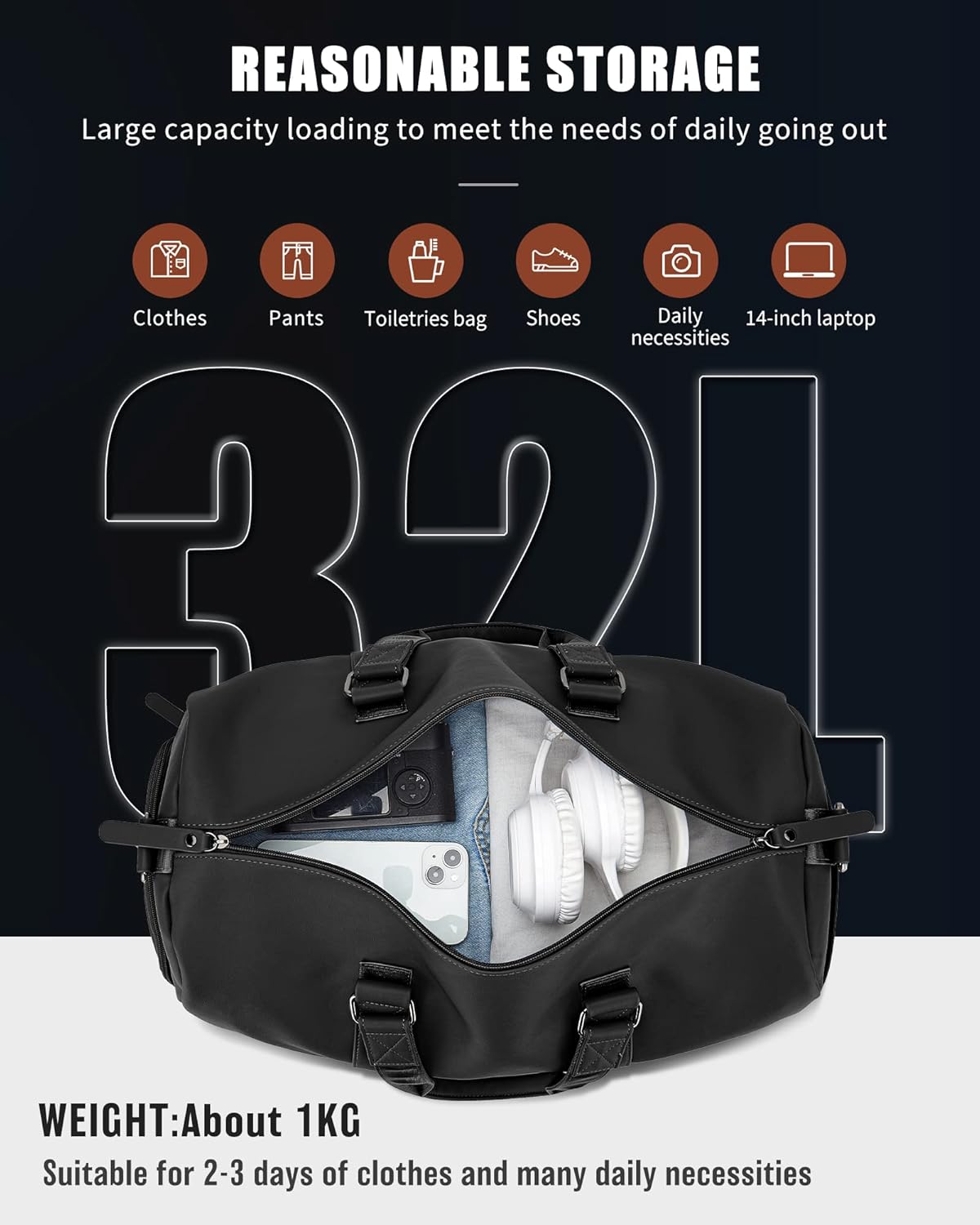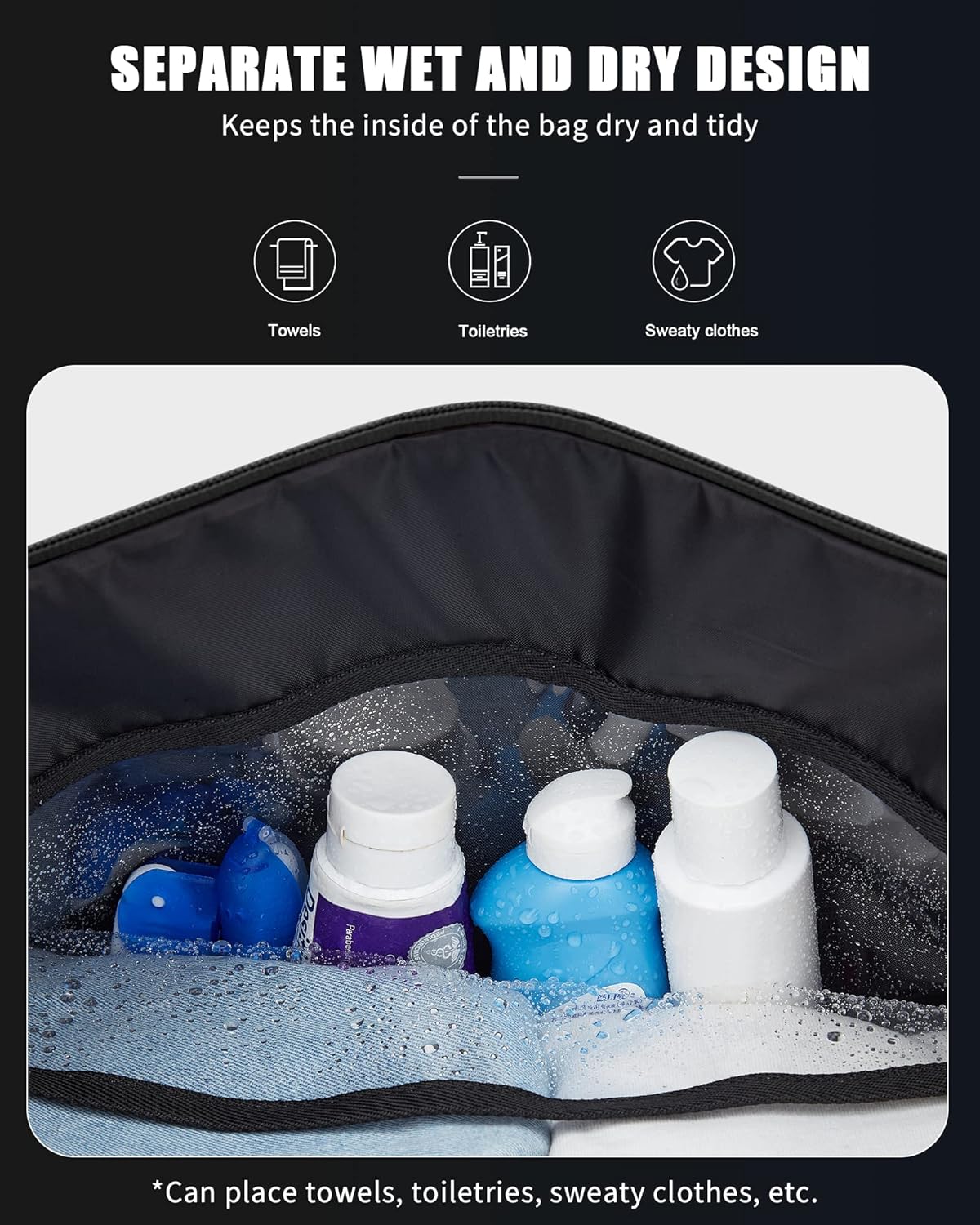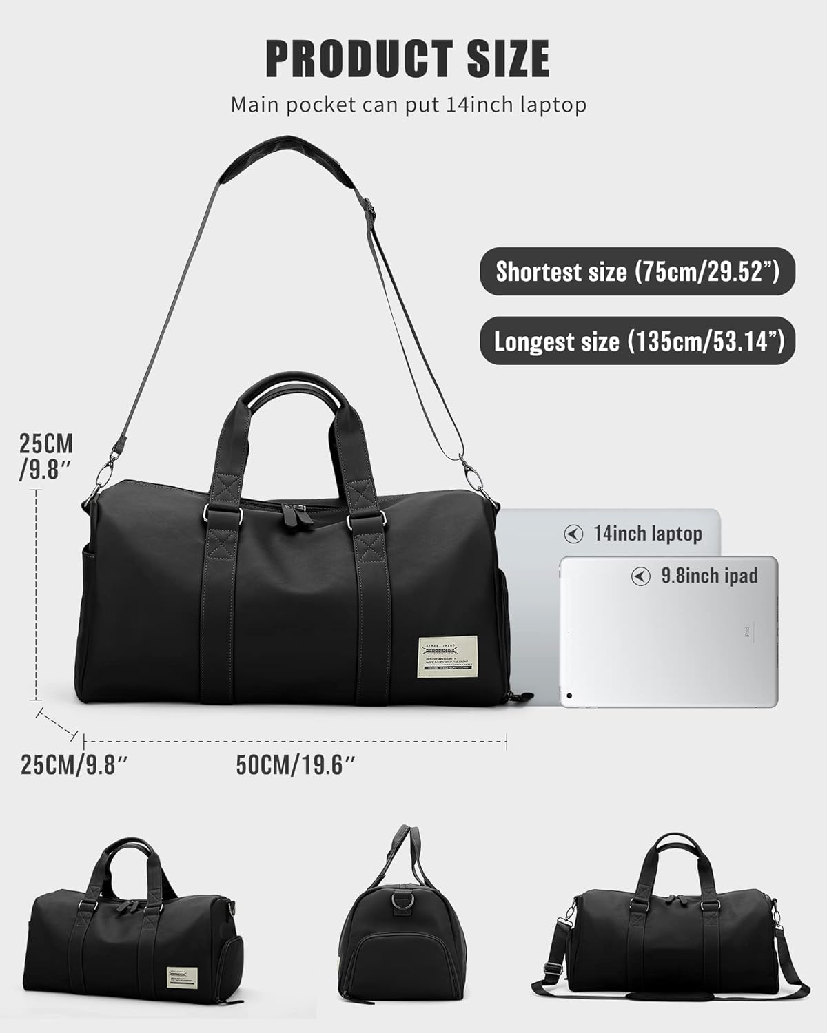• ✔ ROOMY & MULTIFUNCTIONAL POCKETS - Travel duffel bag has plenty of storage with 11 different sizes pockets, including 1 enormous main compartment with a two-way metal zipper to keep all your important belongings, 2 front pockets and 1 back Wet pocket, 2 side pockets. With the wet pocket, for storing wet clothes or towels after you exercise or changing clothes, for bottle, umbrella, shampoo, body wash and facial cleanser, best for your sporting or traveling necessities.