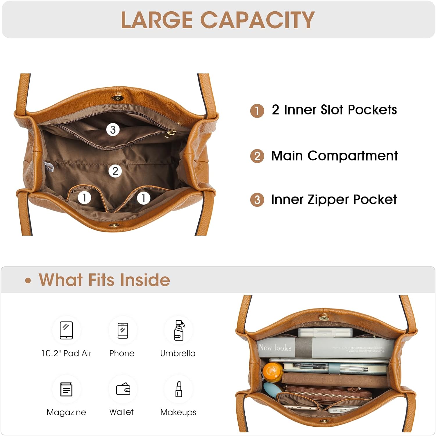 Soft Genuine Leather Tote Bags for Women Casual Shoulder Hobo Purses and Handbags Top Magnetic Snap Closure