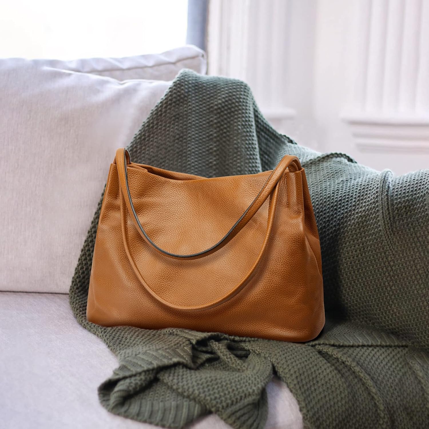 • Soft Genuine Leather Tote Bags for Women Casual Shoulder Hobo Purses and Handbags Top Magnetic Snap Closure